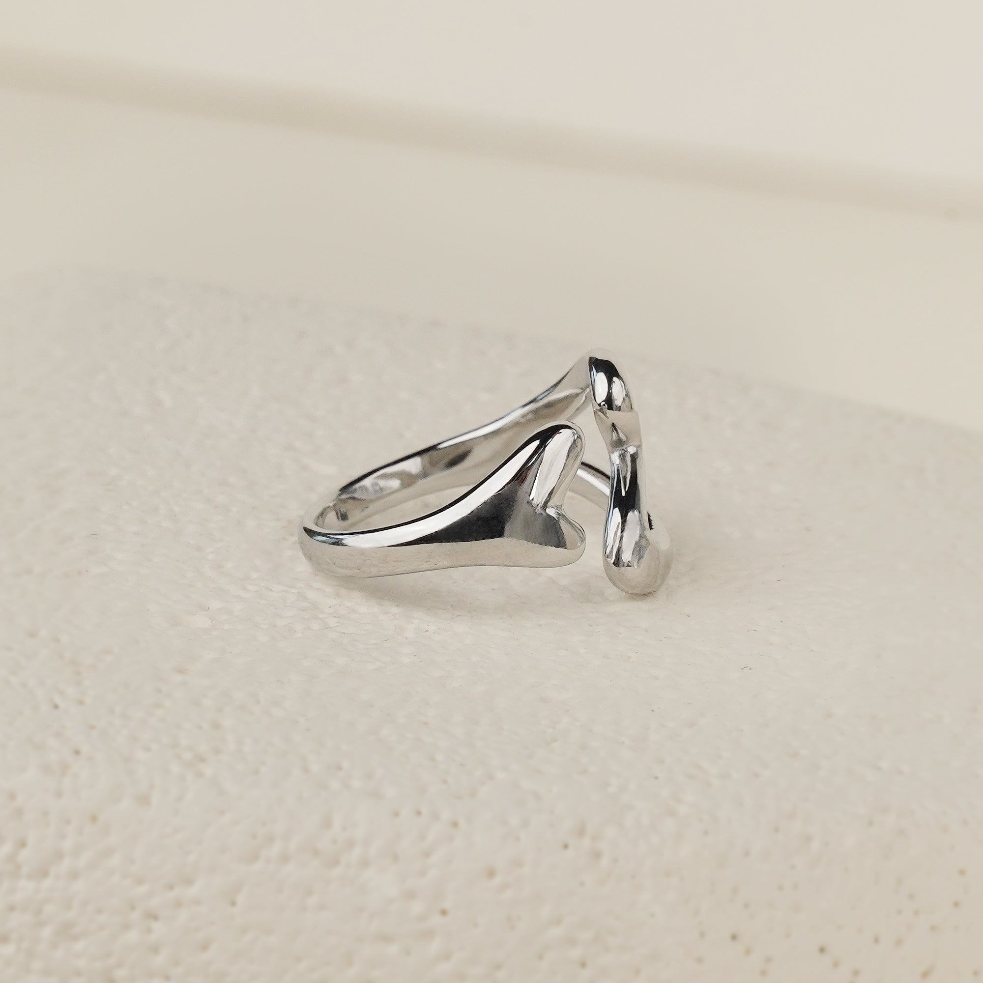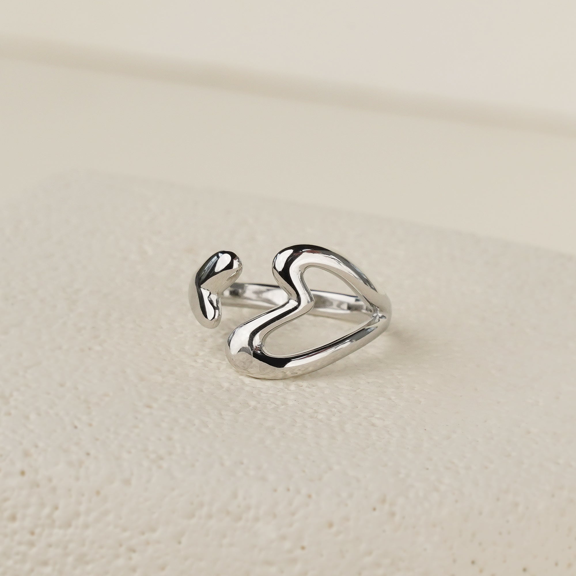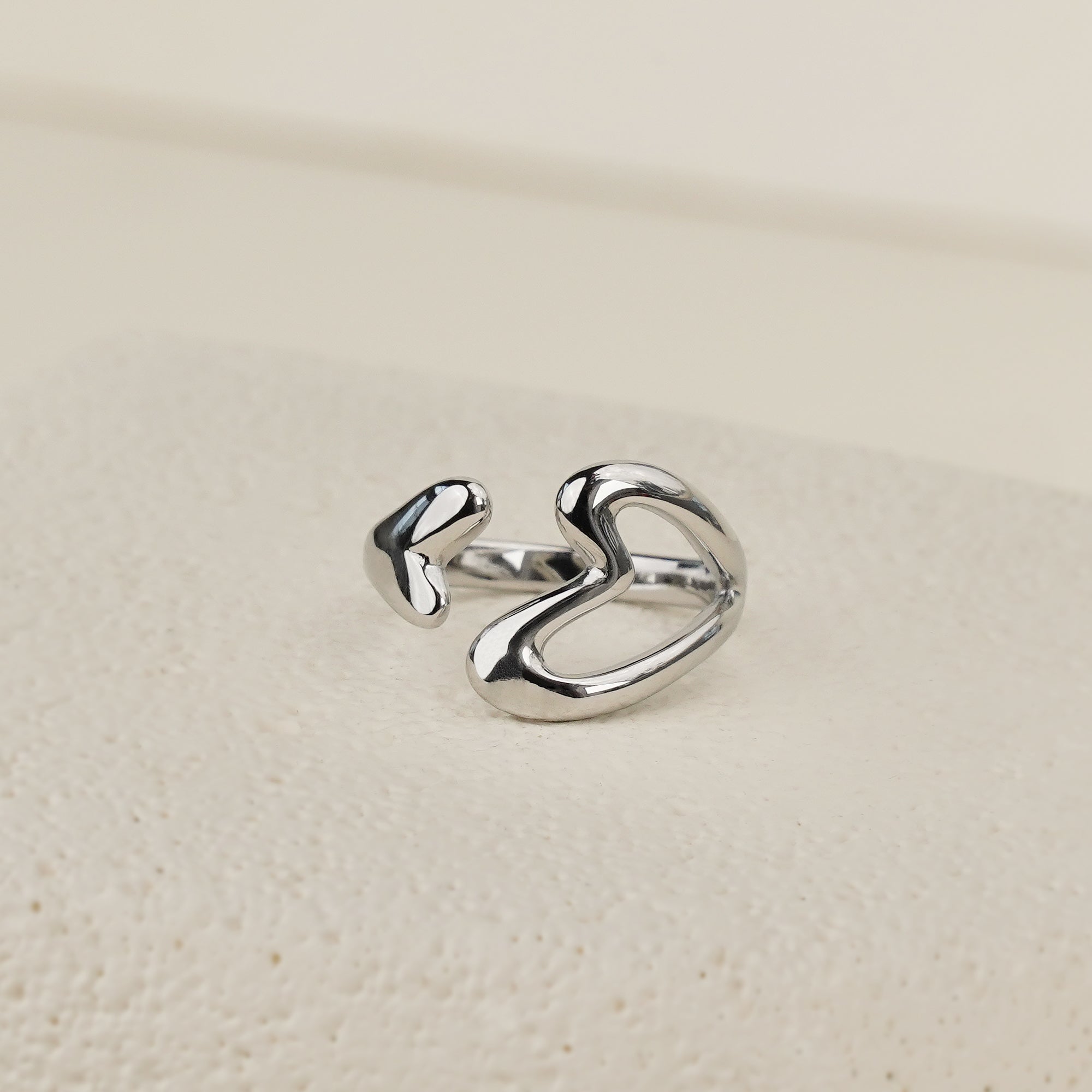 The Elara Ring features a minimalist open heart design in polished silver-tone stainless steel. Whether worn solo or stacked, it's a sweet everyday piece that adds a soft, meaningful touch to any look.