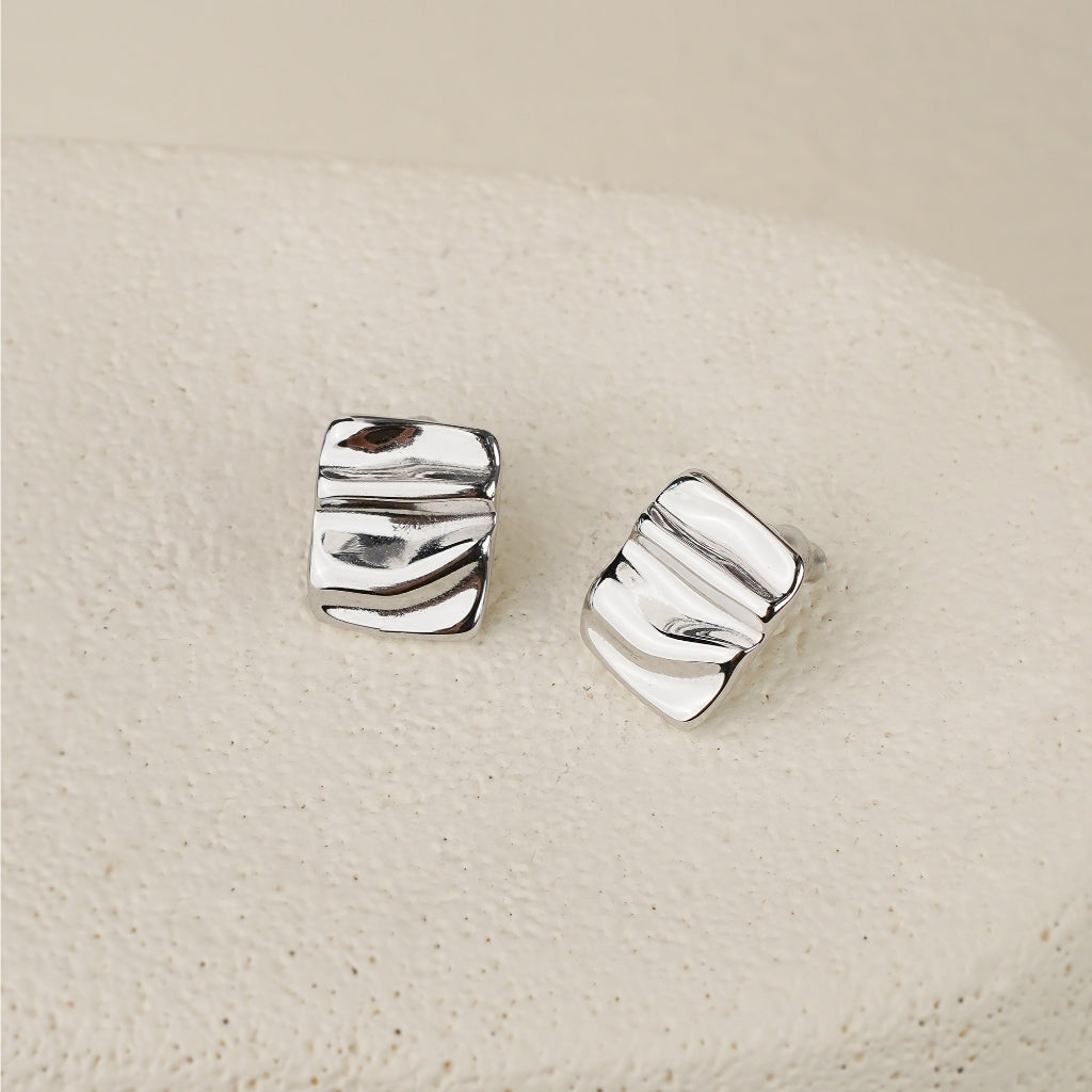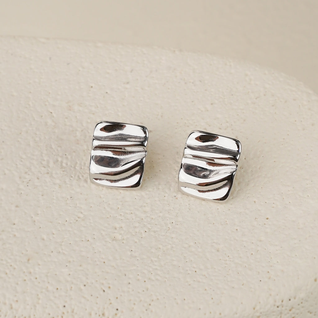 Anting Square Textured memiliki bentuk kotak bersih dengan permukaan bertekstur halus, terbuat dari stainless steel mengilap. Desain minimalis ini memberikan kesan modern dan cocok untuk tampilan santai maupun formal.