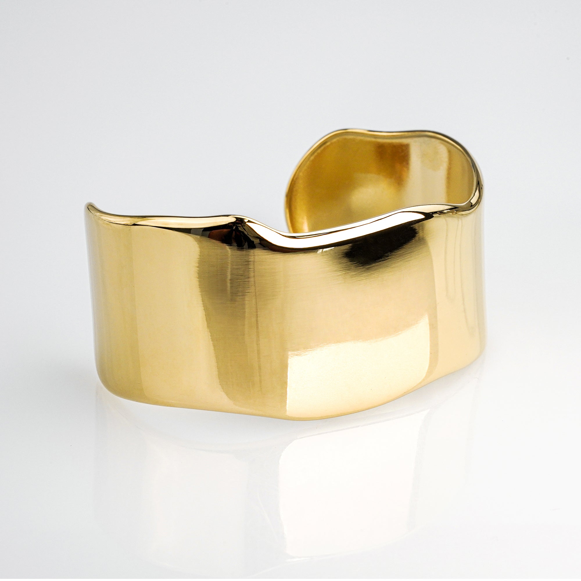 The Syla Abstract Bold Cuff in gold makes a modern statement with its fluid, asymmetric shape. Bold yet refined, this open cuff is crafted from gold-tone stainless steel that’s hypoallergenic, tarnish-resistant, and made to stand out. A versatile piece you can wear solo or stacked.